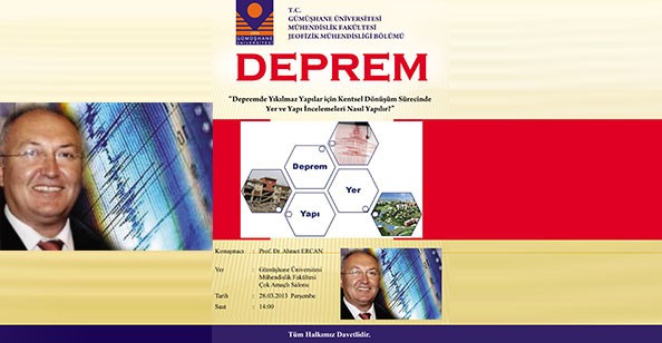 28 Mart Perşembe günü Mühendislik Fakültesi Çok Amaçlı salonda saat 14.00’da başlayacak konferansa konuşmacı olarak İstanbul Teknik Üniversitesi Jeofizik Mühendisliği Bölümü emekli öğretim üyelerinden ve Türkiye’nin önde gelen deprem uzmanlarından Prof.Dr. Ahmet Ercan katılacak.
