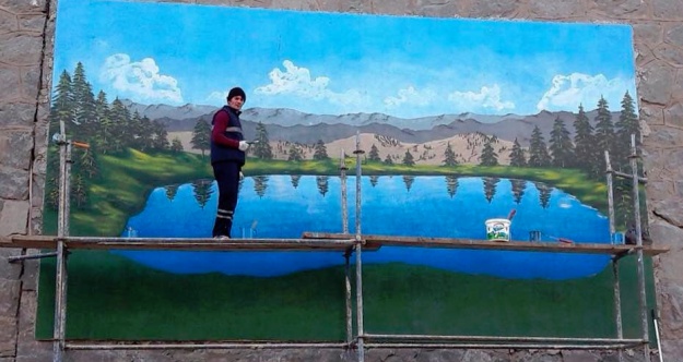 Çok sayıda kişisel sergi açan ve şehrin kalabalık noktalarına yaptığı resimlerle tanınan Ressam Muharrem Muslu, bu kez de Orman İşletme Müdürlüğü, transit yol kenarında ki duvarda ki 15 metrekarelik alana Altınpınar Limni Gölü’nü resmetti.