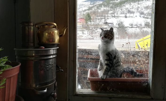 Köy sakinlerin gün içerisinde çay içip sohbet ettiği ve otantik dekorasyonuyla dikkat çeken kahvehaneyi işleten Mustafa Yıldırım’ın geçen yıl yavruyken sahiplenip beslediği kedi kahvehanenin maskotu oldu.