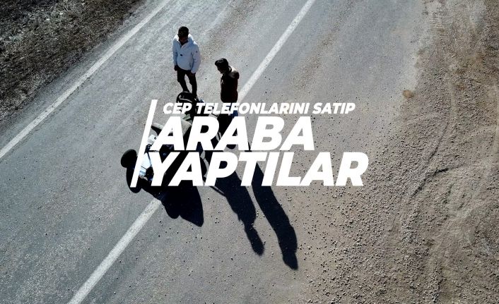 Gümüşhane’de pandemi sürecinde evde sıkılan 3 genç sosyal medyada boşa zaman geçirmek yerine cep telefonlarını satarak aldıkları malzemelerle kendilerine tek kişilik araba yaptı.