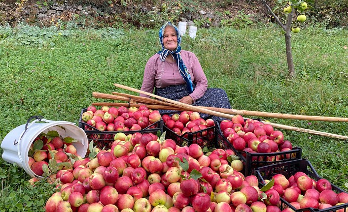 Gümüşhane’nin merkeze bağlı Dibekli köyünde 70 yıldır tarım ve hayvancılıkla uğraştıklarını ve dedelerinin de bu köyde yetişen birbirinden lezzetli elmaları toplayarak başta Gümüşhane, Trabzon ve bölgedeki diğer illere sattığını belirten Üzeyfe Bal, bu yıl elma fiyatlarının düşük olduğunu belirtti.