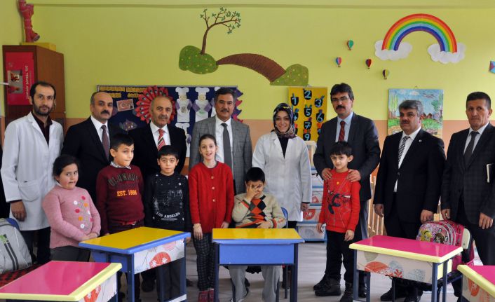Okul Müdürü Bahadır Oğur ve öğretmenler tarafından karşılanan İl Milli Eğitim Müdürü Seydi Doğan, öğrencilerin eğitim aldığı atölyeleri gezdi.