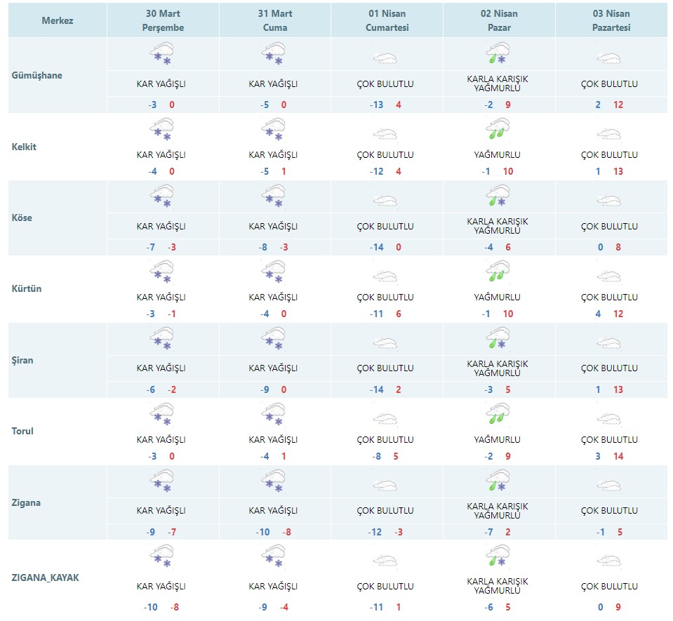 Yağışın birkaç gün daha aralıklı olarak etkisini sürdürmesi ve zirai don beklenen Gümüşhane'de hava sıcaklıkları sıfırın altında 13 derecelere kadar düşecek.