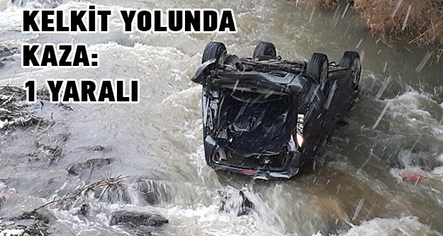 Gümüşhane-Kelkit karayolunda kayganlaşan yolda kontrolden çıkan hafif ticari araç köprüden dereye uçtu. Kazada 1 kişi yaralandı.