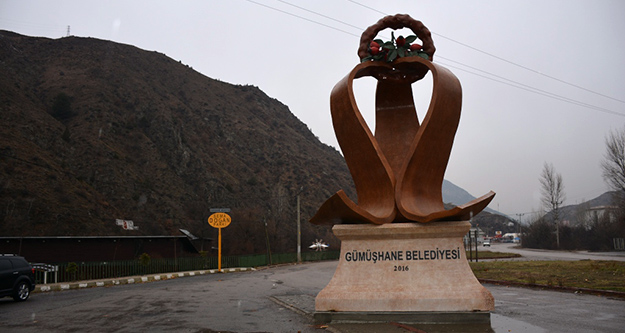 Gümüşhane Belediyesi, Sema Doğan Parkı düzenlemeleri kapsamında Gümüşhane’nin simgesi olan Pestil-Köme ve Kuşburnu figürlerinden oluşan bir anıt yerleştirildi.