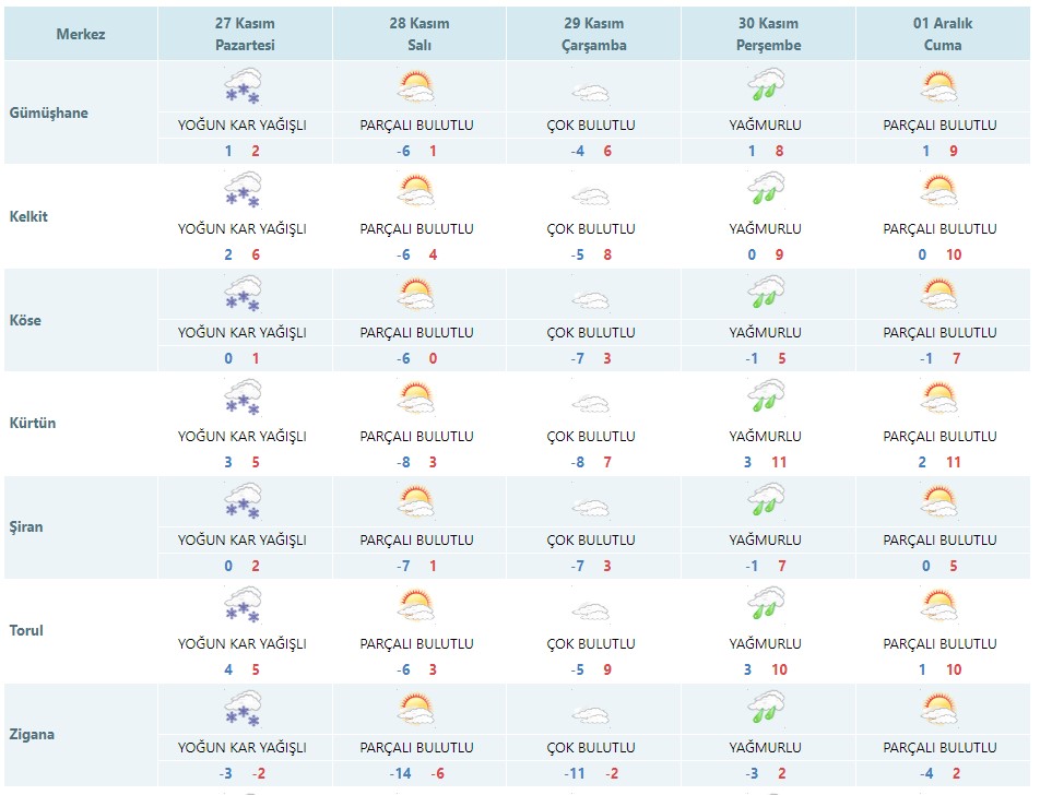 Gümüşhane genelinde yağışın ardından Meteoroloji’nin son değerlendirmelerine göre hava sıcaklıkları sıfırın altında 7 derecelere kadar düşecek.