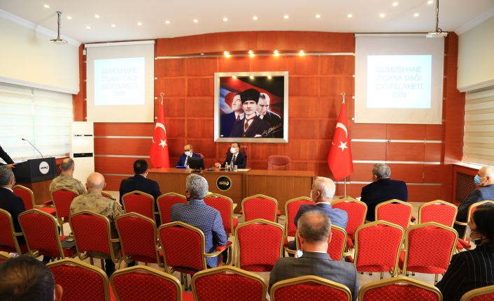 Valilik Toplantı Salonunda düzenlenen ve Vali Yardımcısı Gürkan Karaman, İl Emniyet Müdürü Celal Taşci, İl Jandarma Komutanı Albay İsmail Gökcek, İl Özel İdaresi Genel Sekreteri Ekrem Akdoğan, İl Milli Eğitim Müdürü Miraç Sünnetçi, İl Sağlık Müdürü Dr. Necip Yemenici ve ilgili diğer kurum müdürlerinin katıldığı toplantıda ilk olarak 2009 yılında Torul ilçesi sınırlarındaki Zigana dağında gerçekleşen çığ felaketinde hayatını kaybeden 10 dağcı için hazırlanan video izletildi.