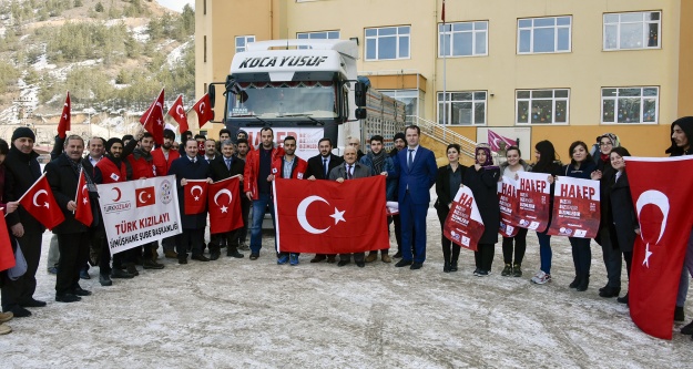 İl Müftü Yardımcısı Hüseyin Hacıfettahoğlu’nun yaptırdığı duanın ardından yardım malzemelerini taşıyan TIR yola çıktı.