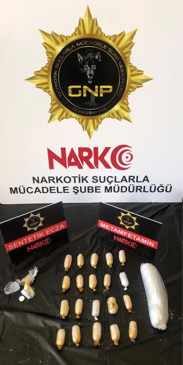 Uyuşturucuya dair bir diğer operasyon ise Şiran ilçesinde gerçekleştirildi. Şiran Cumhuriyet Başsavcılığı koordinesinde Şiran İlçe Emniyet Müdürlüğü’nce yürütülen çalışmada Karaca Mahallesi, Hoca Ahmet Yesevi Caddesi üzerinde yapılan genel asayiş denetimlerinde U.C. ve Y.E.U. isimli şahıslardan şüphelenince arama yapıldı. Cumhuriyet Savcısından alınan talimatla şahısların yapılan üst aramasında 29 adet sentetik ecza maddesi ele geçirdi.