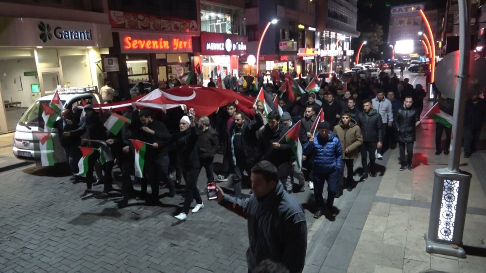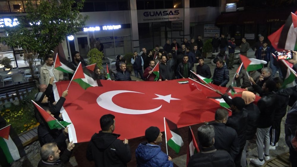 Grup daha sonra Türk ve Filistin Bayraklarıyla Atatürk Caddesi üzerinde sloganlar eşliğinde yürüdü. Yürüyüşün ardından grup dağıldı.