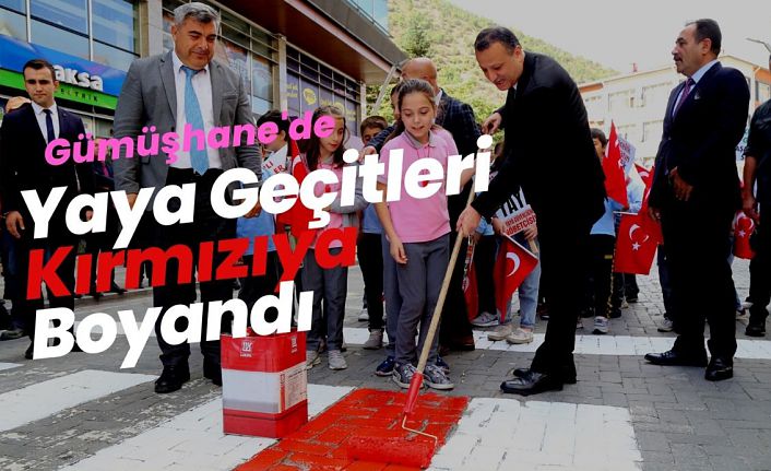 İçişleri Bakanlığınca trafikte yaya önceliğine dikkat çekmek ve sürücü duyarlılığını artırmak amacıyla "Yayalara öncelik duruşu, hayata saygı duruşu" sloganıyla başlatılan kampanya çerçevesinde Gümüşhane’de yaya geçitlerindeki çizgiler kırmızıya boyandı.