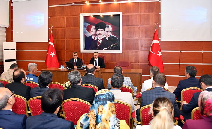 Valilik Toplantı Salonunda yapılan toplantının açılışında konuşan Vali Taşbilek, hazırlıklar, neler yapıldığı, yapılacağı ve alınması gereken tedbirleri masaya yatıracaklarını, bu bağlamda okul idarecilerimiz, okul aile birlikleri ve muhtarlardan görüş alacaklarını söyledi.