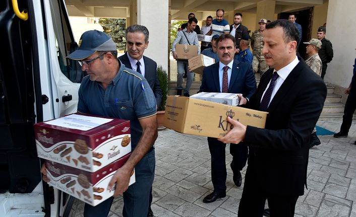 Konuşmaların ardından İl Müftüsü Osman Ayas’ın yaptırdığı duaya hep birlikte “Amin” denilmesinin ardından koliler kargo aracına protokol üyeleri tarafından yüklenerek operasyona katılan kahraman Mehmetçiklere gönderildi.