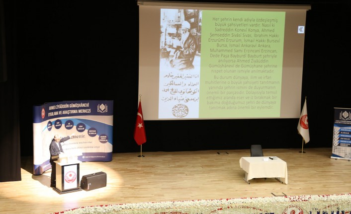 İlahiyat Fakültesinde görevli Araştırma Görevlisi Furkan Ustakurt ise "Zahid bir alim, müşfik bir mürşid: Ahmed Ziyaüddin Gümüşhanevi Portresi" adlı sunumunda “Alemlerin sevgilisi olan Habibullah aşkı ateşiyle yanmış, ömrünü saadetle Hakk’a adamış bir gönül sultanı Ahmet Ziyaüddin Gümüşhanevi. Osmanlı'nın en sancılı dönemi ve en uzun yüzyılı olarak anılan 19. yüzyılda ömrünü süren ve bu hayatını İstanbul'da geçiren bir alim, sufi. Kur'an ve sünnete uyma konusundaki hassasiyetiyle tanınan, dergahı otoriteler tarafından bir darul hadis olarak anılmıştır. Dünyanın çeşitli bölgelerine gönderdiği talebeleriyle Kur’an ve sünnet yolunda hizmet etmiş, merhametli ve cömert kişiliğiyle nice gönüllere girmiş olan Gümüşhanevi Hazretleri bugün de büyük bir sevgiyle anılmaktadır” diye konuştu.