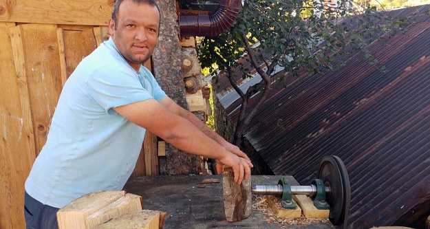 Gümüşhane’nin Kürtün ilçesinde yaşayan Zübeyir Yılmaz, hayalini kurduğu odun yarma makinesini Türkiye’nin dört bir tarafından parçalarını toplayarak tamamladı.