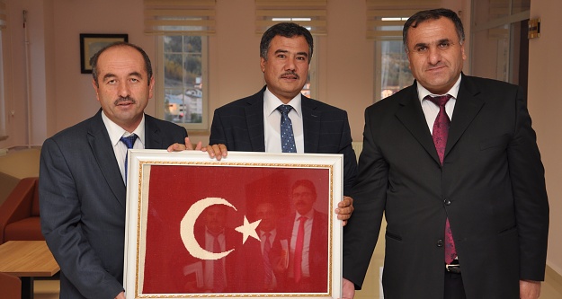Yapılan değerlendirme ile bitirilen toplantının ardından İlçe Milli Eğitim Müdürü Bayram Kuntak İl Milli Eğitim Müdürü Seydi Doğan’a Türk Bayrağı hediye etti.
