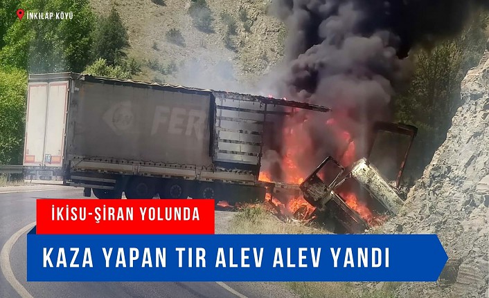 Çarpmanın etkisiyle alev alan tırın sürücüsü hemen araçtan inerken birdenbire alev alan ve dumanların metrelerce yükseldiği tır alev alev yandı.