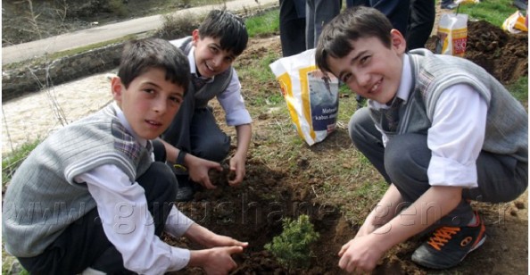 Gümüşhane Belediyesi Park ve Bahçeler Müdürlüğünün gösterdiği alana Orman Müdürlüğünden temin ettikleri fidanları toprakla buluşturan 75 öğrencilere ağaç ve ormanın önemi de anlatıldı.