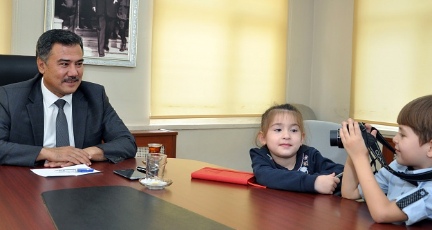 Gümüşhane Merkez Anaokulu öğrencileri Atilla Alp Gündüz, Ayşe Melek Öztürk, Ahmet Can Dinç ve Ayşegül Emecen İl Milli Eğitim Müdürü Seydi Doğan’ı makamında ziyaret ederek okul gazetesi için röportaj yaptı.