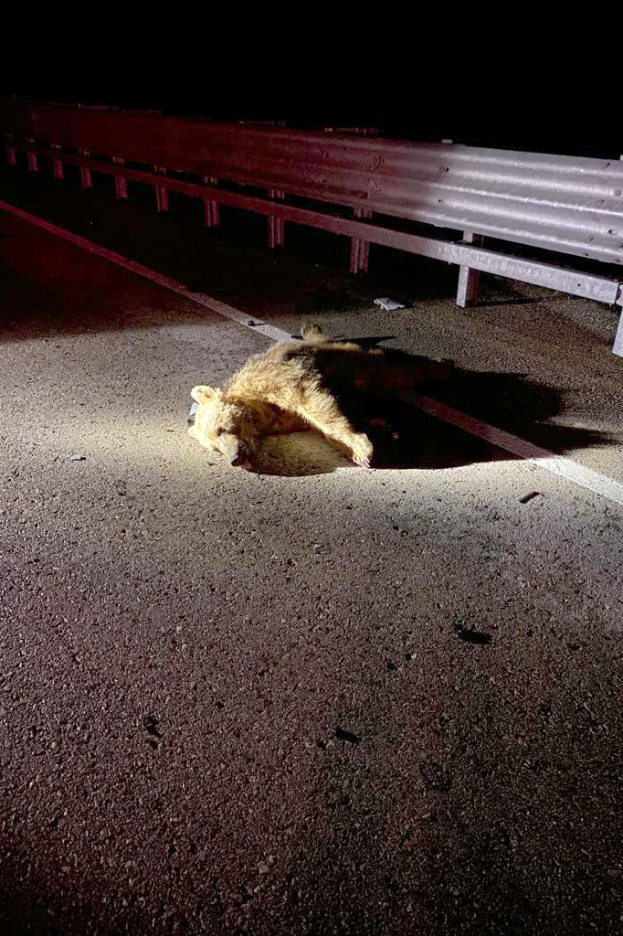 Yağış nedeniyle kayganlaşan yolda çarpmanın etkisiyle yoldan çıkan otomobilin sürücüsü O.K. yara almadan kurtulurken çarptığı ayı ise telef oldu.