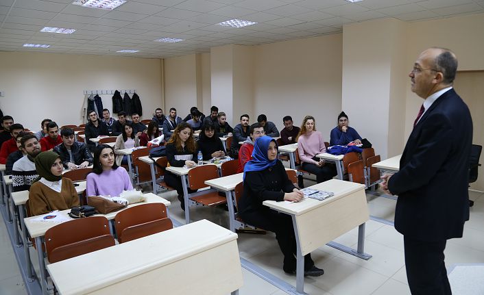 Öğrencilerle sohbetinde iletişimin farklı boyutlarda gelişimi ve önemine değinen Rektör Zeybek, tüm insanlığın ortak bir atadan geldiğini belirterek, “Bizim kültürümüze göre hepimiz Hz. Âdem’in çocuklarıyız. Bu nedenle de mutlaka konuşabilmeliyiz. On yıl sonra farklı bir yerde sınıf arkadaşlarımızla karşılaştığımızda birbirimize soğuk bakarak, ‘Ben bununla öğrenciyken hiç merhabalaşmamıştım’ dememeliyiz. Elbette ki samimi olduğumuz bazı arkadaşlarımız olabilir. Fakat herkesle oturabilmeli ve herkesle konuşabilmeliyiz. Toplumda yaşanan olumsuzlukların, kavgaların, mutsuzlukların ve daha ileri boyutta ayrımcılığın, cinayetlerin temelinde iletişimsizlik yatmaktadır. Bu nedenle de iletişim konusuna sadece Halkla İlişkiler Bölümü öğrencileri olarak bakmayın. Bu bölümü okumasak da ya da hiç üniversite okumasak da insani bir değer olarak iletişim konusuna ağırlık vermeli, becerilerimizi artırabilmeliyiz” diye konuştu.