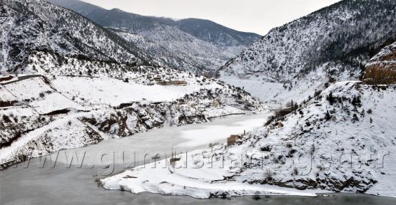 Gümüşhane-Trabzon karayolunun Kürtün yol ayrımı bölgesinden başlayarak Kürtün ilçesi istikametinde yaklaşık 2 kilometrelik alanda yüzeyi buz tutan baraj gölü, yaşanan soğuk hava dalgasının adeta ispatı oldu.