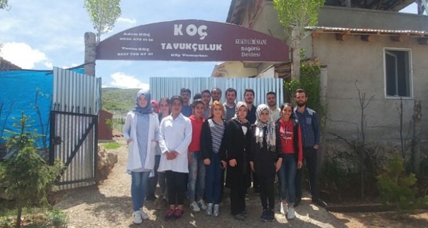 Kelkit mezbahanesinde veterinerlerin yaptığı kesim öncesi ve sonrası muayene ve suni tohumlama uygulamasına da katılan öğrenciler burada Veteriner hekimlerin gözetiminde bilgi alarak yapılan işlemleri yerinde izledi.
