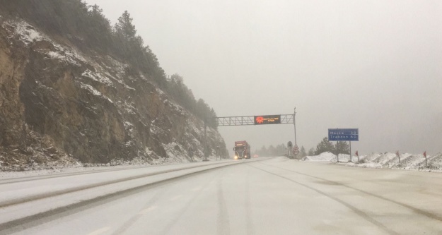 Özellikle zirvede etkili olan yağış nedeniyle yetkililer kış lastiği olmayan sürücülerin bu bölgede dikkatli, tedbirli ve yavaş gitmelerini isterken, tır ve kamyon gibi büyük araçların zaman zaman ulaşımda sorun yaşadığı öğrenildi.