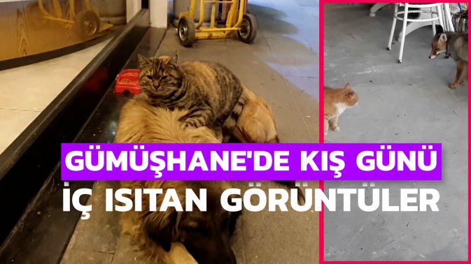 Gümüşhane'de yılın son gününde kent merkezinde kedi ve köpeğin dostluğu, ArzularKabaköy Beldesinde de kediyle tilkinin yanyana olduğu anlar soğuk kış gününde yürekleri ısıttı.