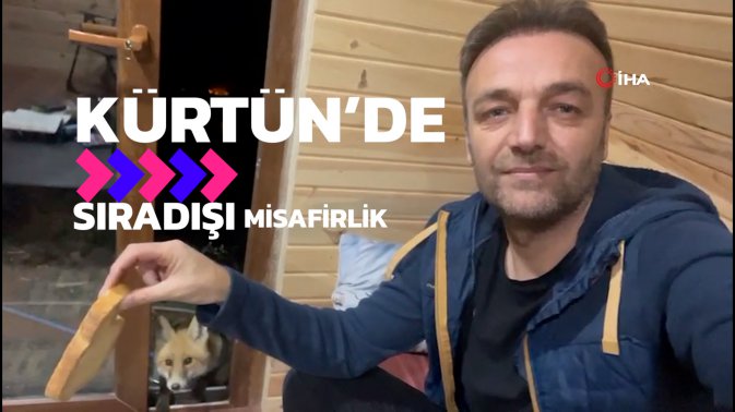 Gümüşhane’nin Kürtün ilçesinde bir bağ evini mesken tutan tilki, her akşam ev sahiplerinin yanında eve girip karnını doyurup dışarı çıkıyor.