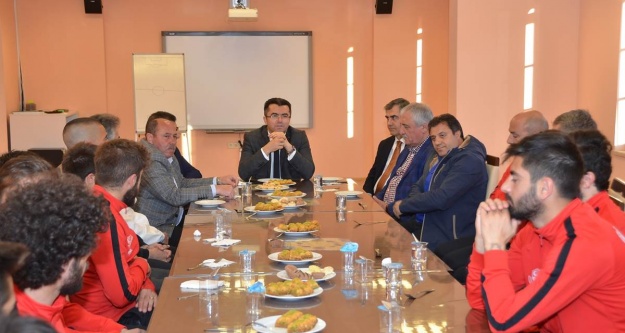 Sezon boyunca iç sahadaki tüm maçlarını gerek protokol tribünündeki yerinden gerekse cezalı durumdayken 90 dakika boyunca dağ tribününden izleyen Vali Memiş, ligdeki son maçını deplasmanda bu hafta sonu Etimesgut Belediyespor’la oynayacak temsilcimize moral ziyareti gerçekleştirdi.