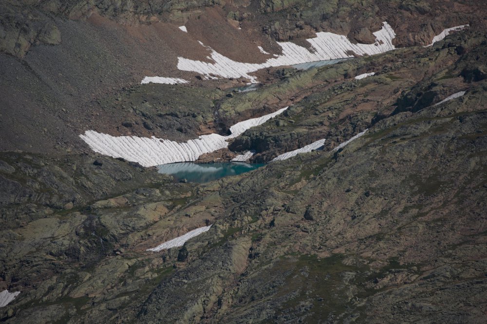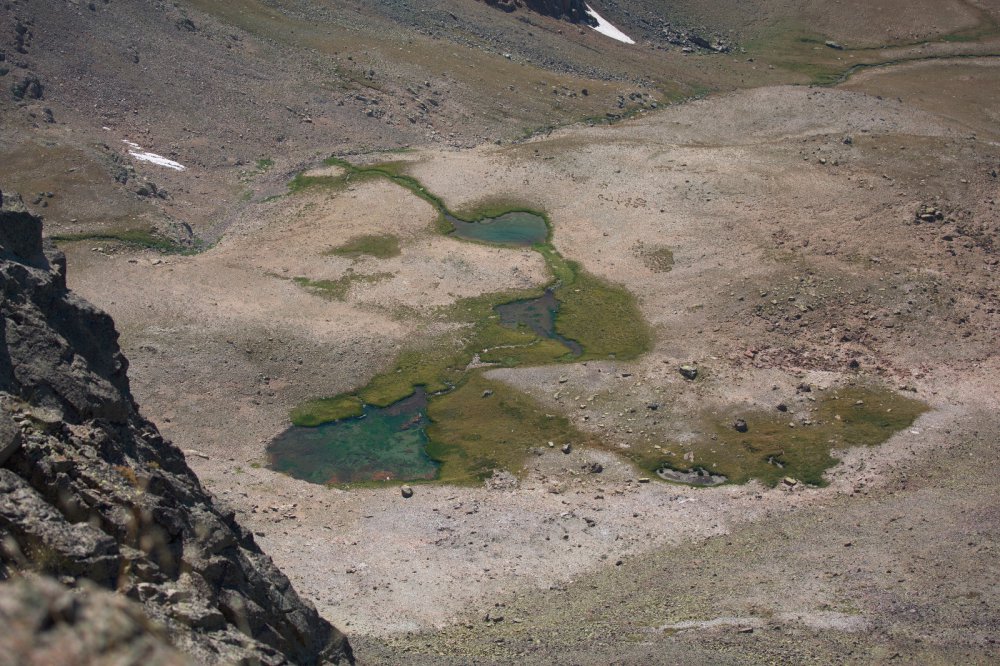 Yukarı doğru bakarken mesafe pekte anlaşılmıyormuş. O dediği kar kütlesinin yanına ancak 2 saat sonra ulaşabilmiştik. Yorucu olacağını tahmin ediyordum lakin parkurun bu kadar dik olacağını hiç tahmin etmiyordum. Rakım gittikçe artarken ciğerlerimize giren hafif kramplar işin ciddiyetini giderek hissettiriyordu. Belirli bir yerden sonra sadece taşlar üzerinde yürümeye başlamıştık. Hayalini kurduğum piknik gezisi, ciddi anlamda bir zirve tırmanışa dönüşmüştü. Sürekli yukarı yönlü bir tırmanış içerisinde idik. Yorgunluk ve zamanın ilerlemesi, hafif bir tedirginlik hissi uyandırmaya başlamıştı. Melikşah beyin yaptırdığı un helvasını yerken biraz mola fırsatı bulmuştuk. Bu molalar sırtımızda taşıdığımız ağırlıkların, ne kadar fazla olduğu gerçeğini yüzümüze vuruyordu. Ekip lideri ve arkadaşlarımızın esprili ve bilgi dolu sohbetleri ile zirveye yaklaşmışken, yamaçlarda birkaç buzul gölü görmeye başlamıştık. Balıkların göl üzerinde oluşturduğu dalgaları o uzaklıktan bile fark edebiliyorduk. Yaban hayatına ait gördüğümüz işaretler bölgede yalnız olmadığımızı da hatırlatıyordu bir taraftan.