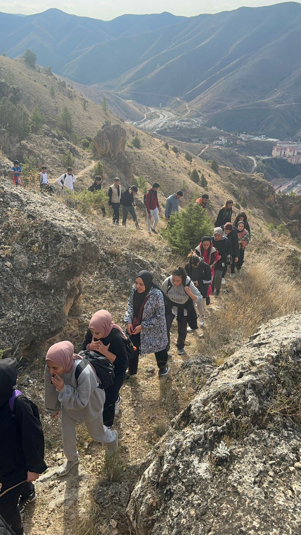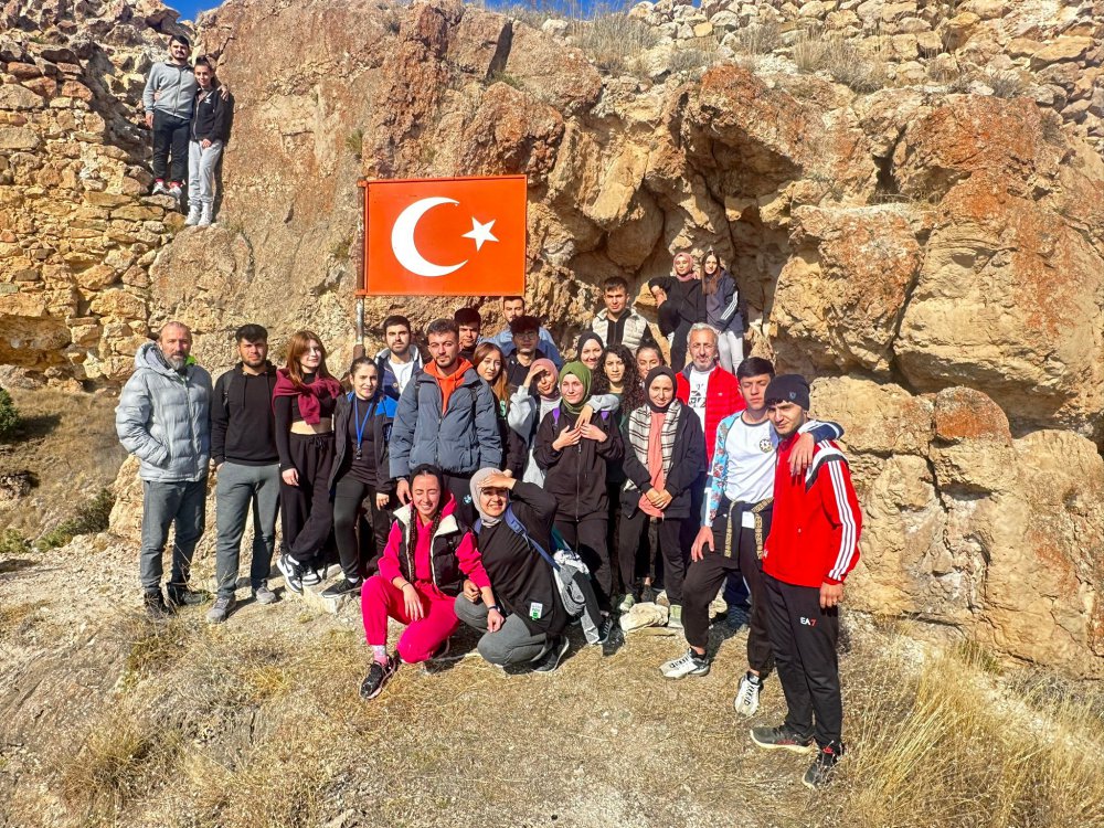 Öğrencilerden 50 kişilik bir grup Akçakale Mahallesi’nde yer alan Akçakale Kalesi’ne doğru hareket ederek burada Türk bayrağı önünde saygı duruşunda bulundu.