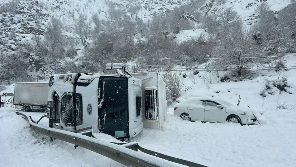 Gümüşhane’nin Kürtün ilçesinde meydana gelen trafik kazasında kontrolden çıkan tırın sürücüsü yaralandı.