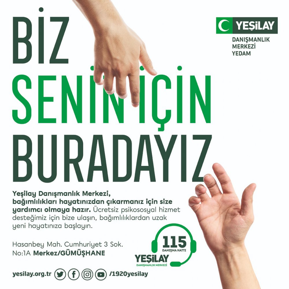 Yeşilay Danışmanlık Merkezleri’ni (YEDAM) hizmete açan kurum, bağımlılara ve yakınlarına ücretsiz psikolojik danışmanlık ve rehabilitasyon desteği sağlıyor.