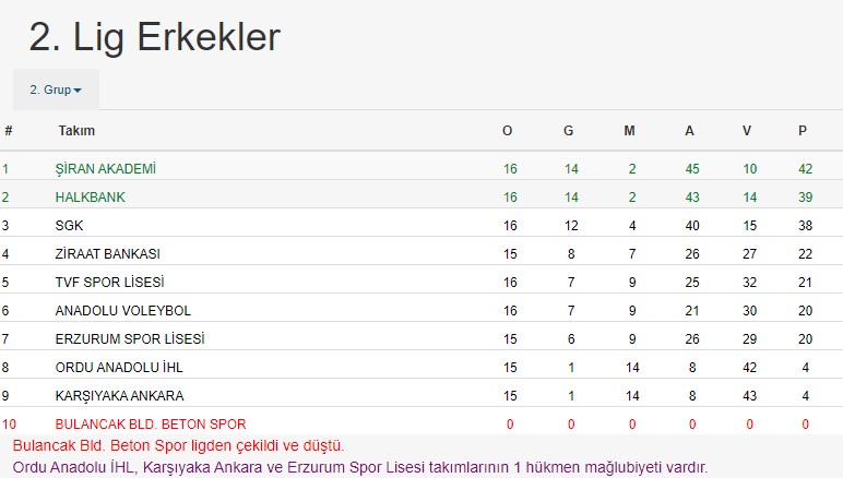 Türkiye Voleybol Erkekler 2.lig, 2 grupta mücadele eden temsilcimiz Şiran Akademispor, 16 haftalık maratonun sonunda grubunu şampiyon olarak tamamladı. Temsilcimiz 1.lig için play-offları da aşmak zorunda.