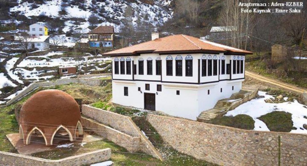 Bir bahçesi var bir de dış kapısı, önce oradan gireceksin sonra evin kapısına ulaşacaksın. Bahçede bir hamam olduğunu bildiğimiz yapı ilişiyor gözümüze, Ağaçlar bütünleşmiş konakla.