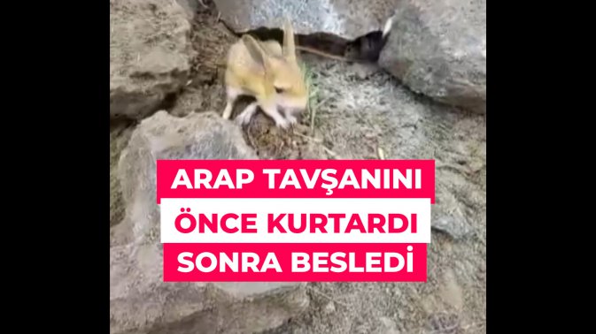 Nesli tehlikedeki Arap tavşanını önce kurtardı sonra elleriyle besledi