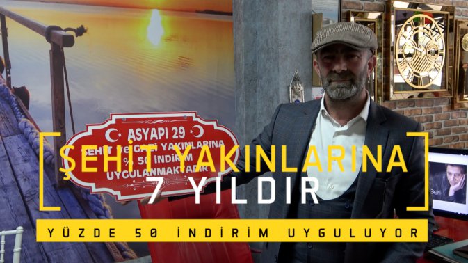 Gümüşhane’de iç mimarlık sektöründe faaliyet gösteren Ersin Tosun, 7 yıldır şehit ve gazi yakınlarına yüzde 50 indirimle hizmet veriyor. Tosun, Türkiye’deki diğer esnaflara da şehit ve gazi yakınlarına indirim yapmaları konusunda çağrıda bulundu.