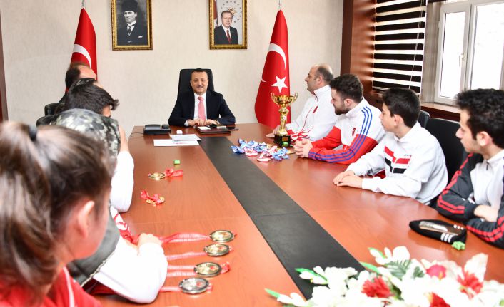 Gümüşhane Valisi Kamuran Taşbilek, sportif müsabakalarda Gümüşhane’yi başarıyla temsil eden ve onlarca kupa ve madalya kazanan atıcılar ve bilek güreşi sporcularını kabul etti.