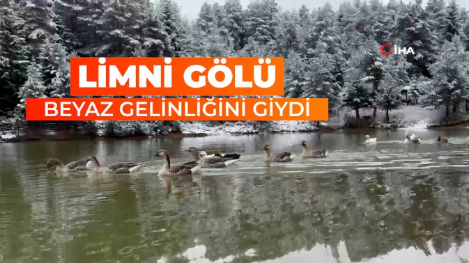 Gümüşhane'nin Torul ilçesine bağlı Zigana Köyü sınırlarındaki doğa harikası Limni Gölü Tabiat Parkı, kar yağışıyla birlikte büyüleyici bir atmosfere büründü.