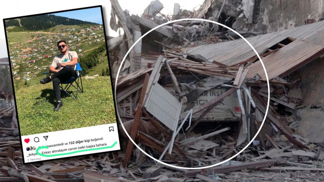 Hatay'da kontrollü yıkım çalışması sırasında bina iş makinesinin üzerine çöktü. Olayda iş makinesi operatörü Kürtünlü hemşehrimiz Berkay Ten (23) hayatını kaybetti. Ten, 3 ay önce sosyal medyada "Enkaz altındayım canım belki başka bahara" yazdığı fotoğrafını paylaşmıştı.