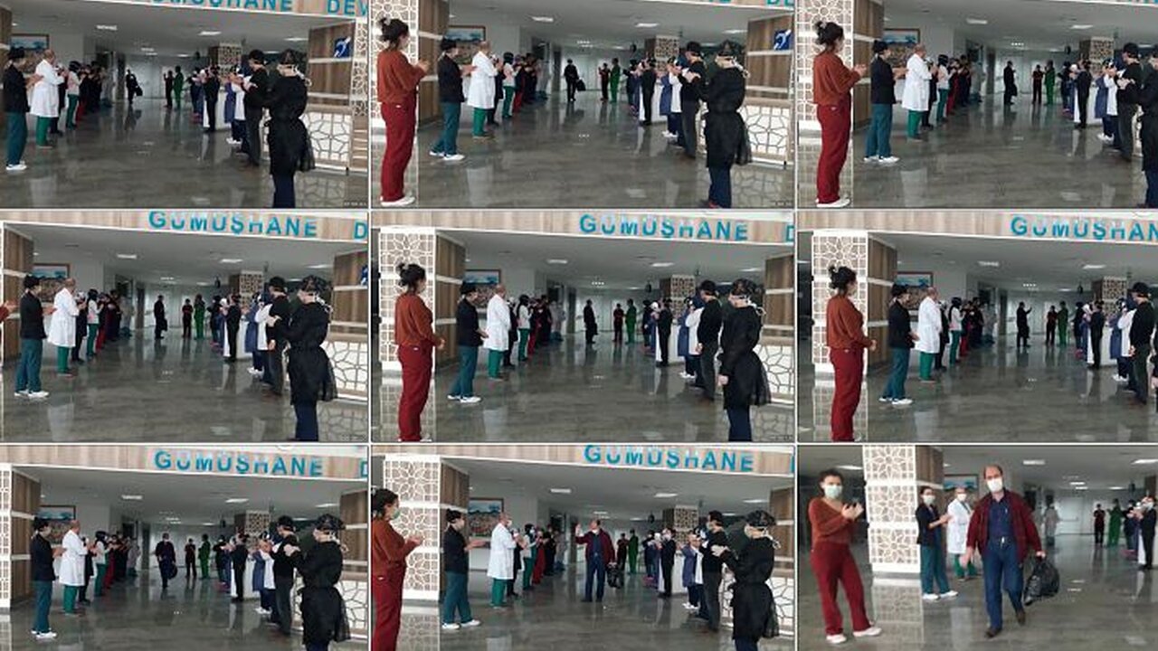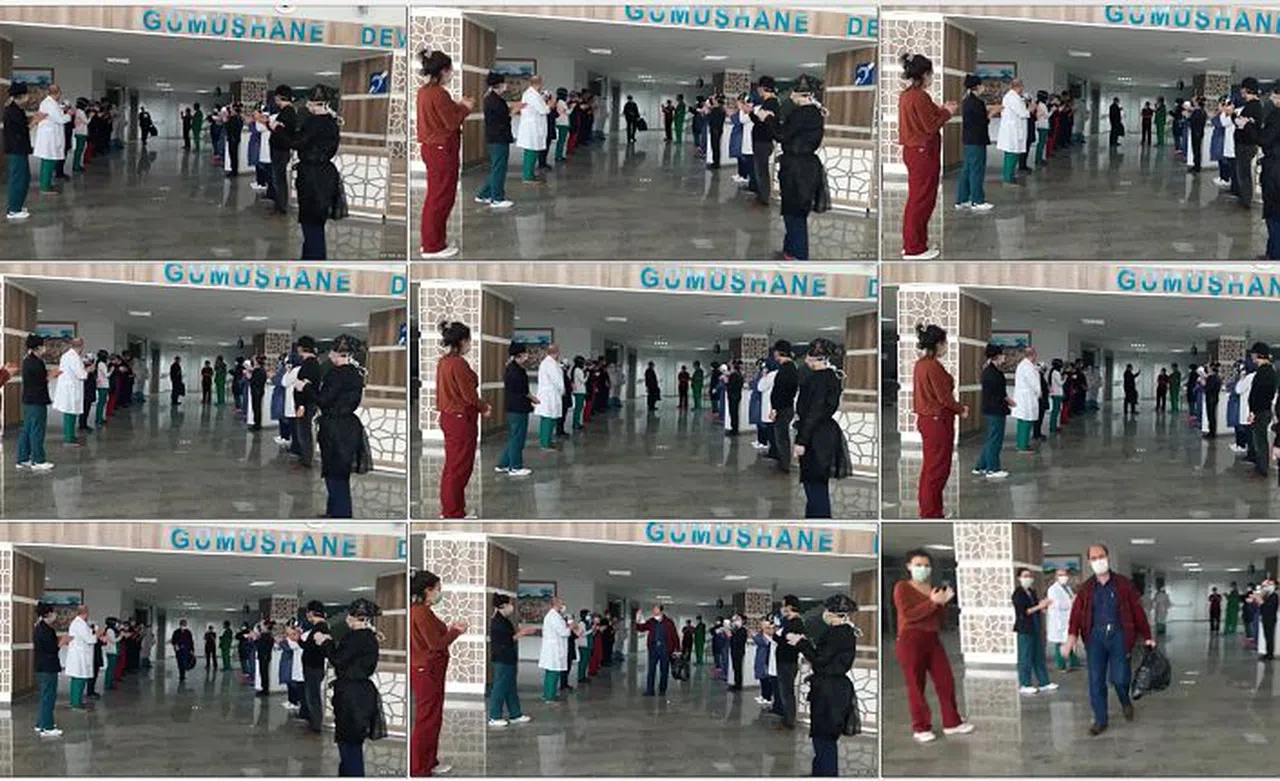 M.K, sağlık çalışanları ve hastane personelinin alkışları arasında elinde valiziyle kendisini tedavi eden sağlık çalışanlarına el sallayarak hastaneden çıktı.