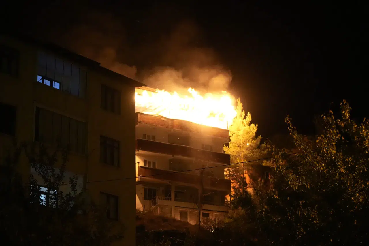 Gümüşhane’de 4 katlı bir binanın 3. katında çıkan yangında alevler geceyi aydınlatırken, yangında ölen yada yaralanan olmadı.