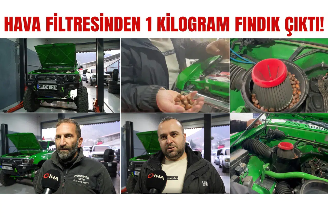 Hava filtresinin içinde, temiz ve zarar görmemiş halde 1 kiloya yakın fındık bulundu. Yapılan incelemede, bir sincabın araçtaki geniş hava girişlerinden içeri girerek hava filtresini kendisine kışlık erzak deposu haline getirdiği anlaşıldı.