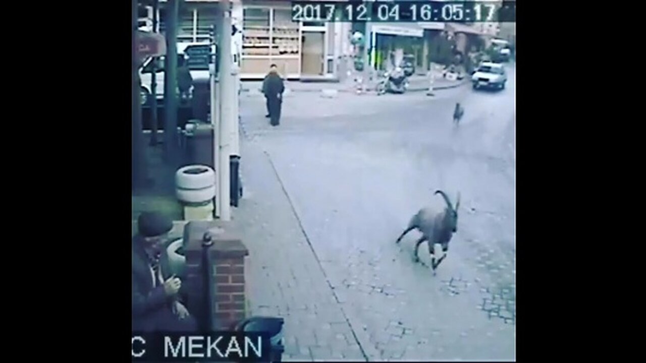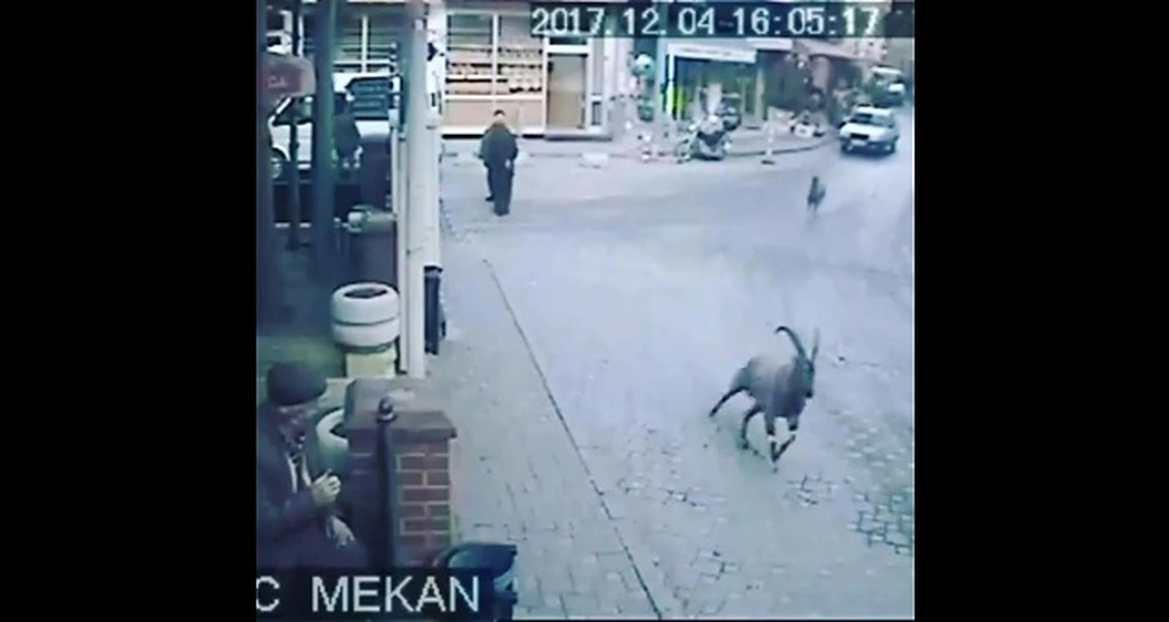 Görüntülere araçların yanından hızla geçen dağ keçilerini fark eden vatandaşların merakla dükkanlardan çıkarak hatta keçilerin ardından koşarak görmeye çalıştığı yansıdı.