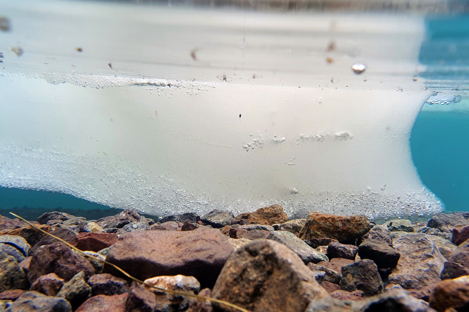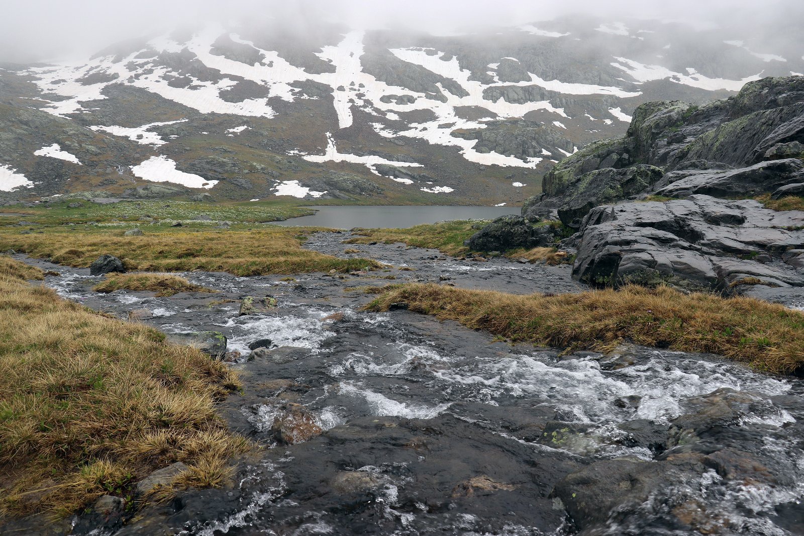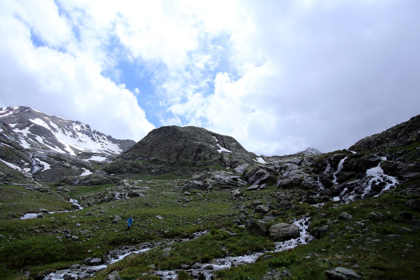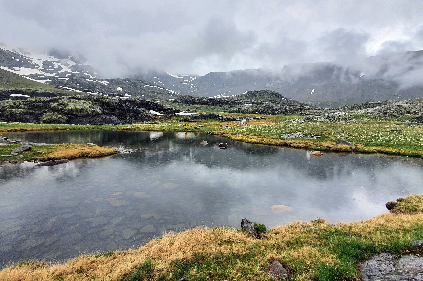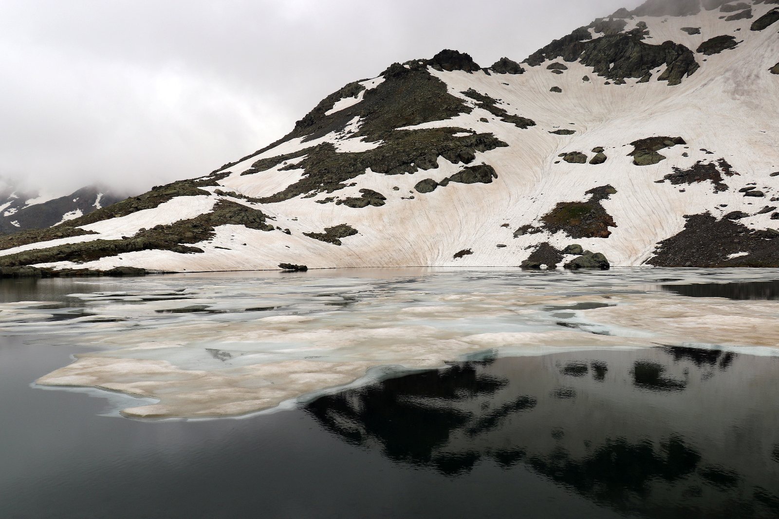 Bu noktada dolu yağışına yakalanan sporcular buzla kaplı gölde yağışa aldırmadan fotoğraf çektikten ve tulum dinledikten sonra bu kez yağmur yağışı altında 2 bin 720 metre rakımdaki Büyük göle ulaştı.
