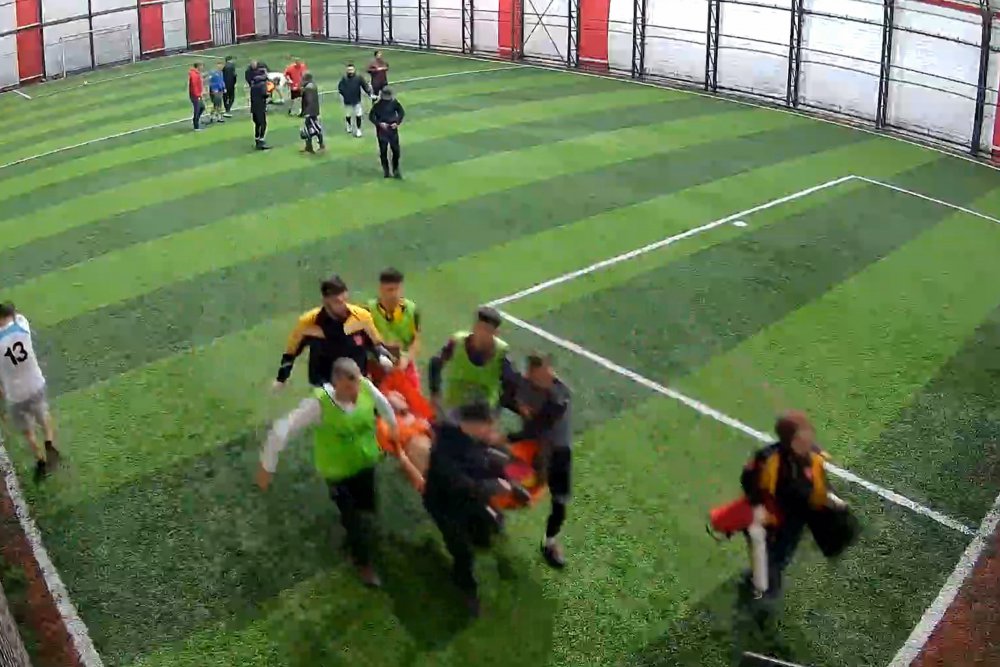 Gümüşhane’de gittiği halı saha maçında kalp krizi geçiren 40 yaşındaki İbrahim Sağırkaya yapılan tüm müdahalelere rağmen kurtarılamadı. Sağırkaya’nın kalp krizi geçirdiği anlar halı sahanın kameraları tarafından görüntülendi.