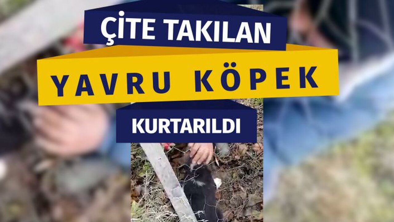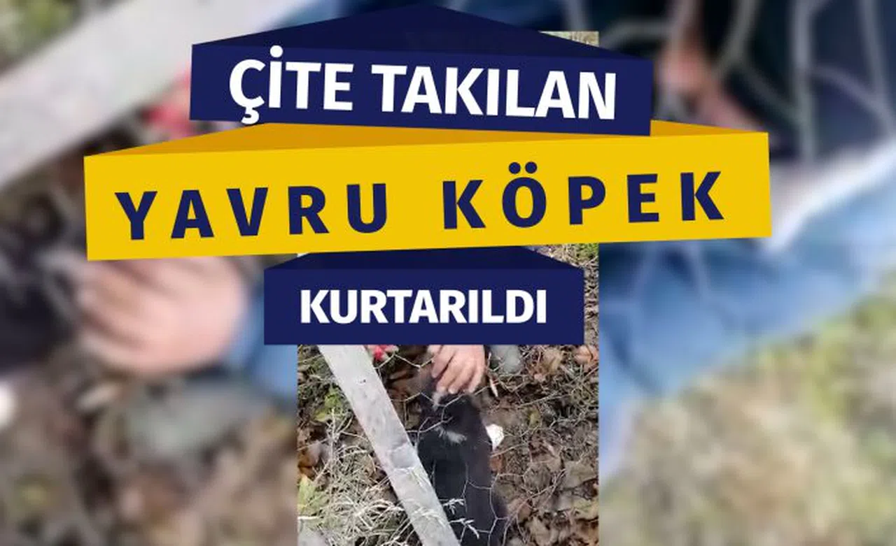 Gümüşhane’nin Kürtün ilçesine bağlı Özkürtün beldesinde bahçe çitine kafasını sıkıştıran yavru köpek alabalık çiftliğinde çalışanlar tarafından kurtarıldı.