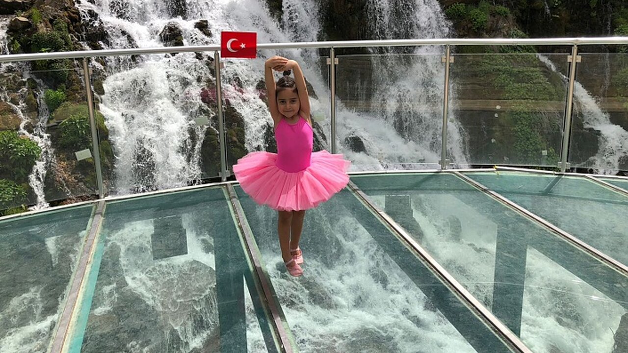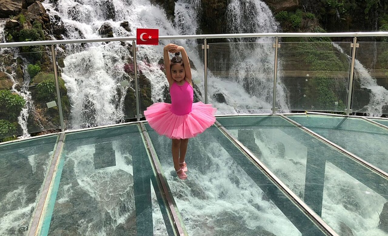 Gümüşhaneli 6 yaşındaki bale sanatçısı Elif Ela Doruk, Şiran ilçesi sınırlarındaki Tomara Şelalesi Tabiat Parkında bulunan cam seyir terası üzerinde bale yaptı.